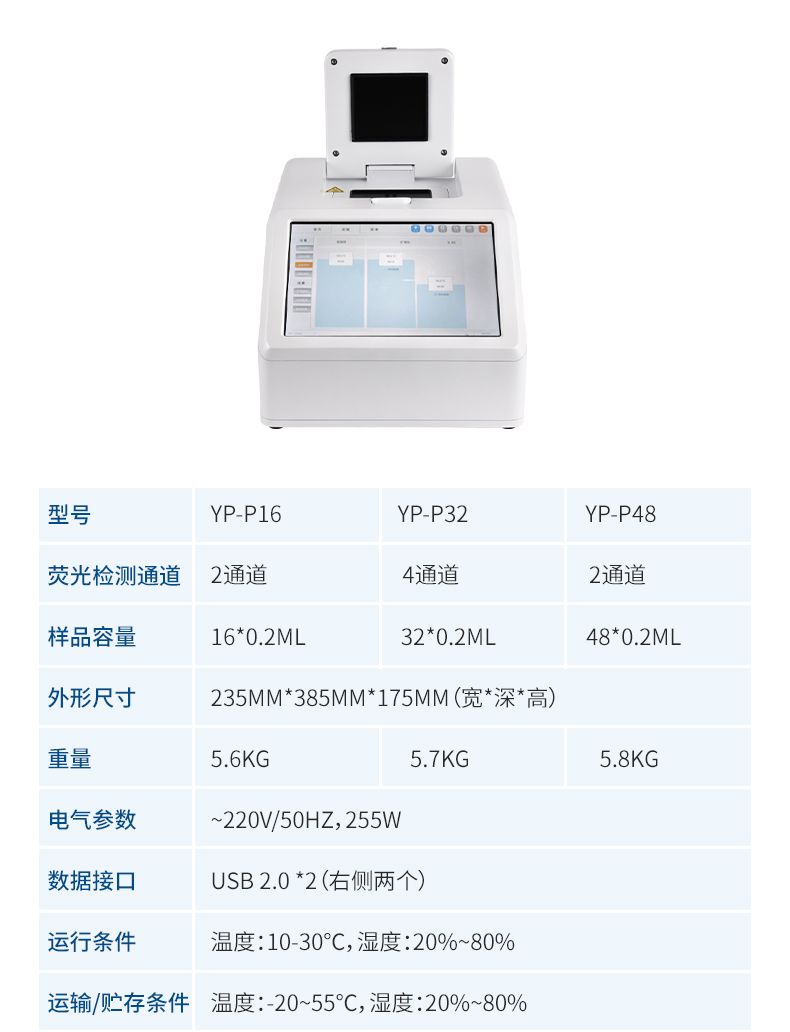 YP-P32型号非洲猪瘟羞羞AV在线播放设备主要用于运行实时荧光定量PCR实验,通过荧光激发和采集的方式,对实验过程进行实时监控,将实验过程数据绘制成荧光曲线,实时呈现于仪器显示界面,并对实验数据进行拟合和分析,最后可生成PDF格式的实验报告。