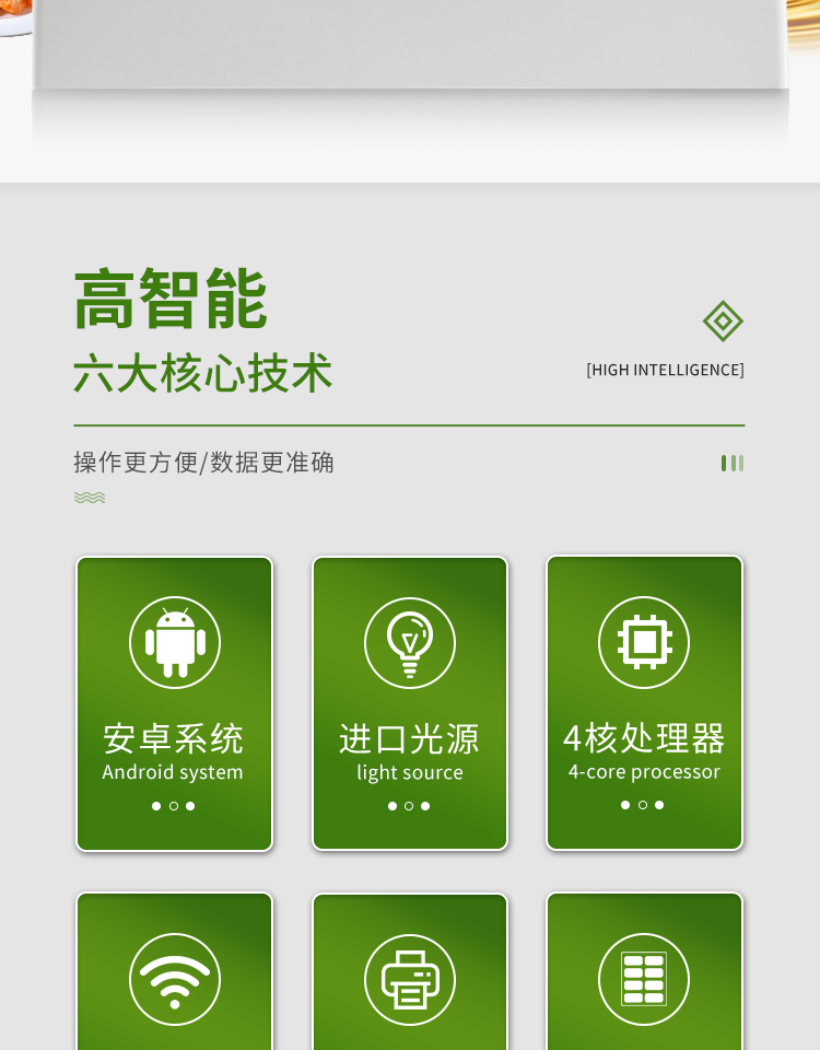 1、安卓智能操作系统,采用更加高效和人性化操作,仪器具有网线连接、wifi联网上传、GPRS无线远传功能,快速上传数据。