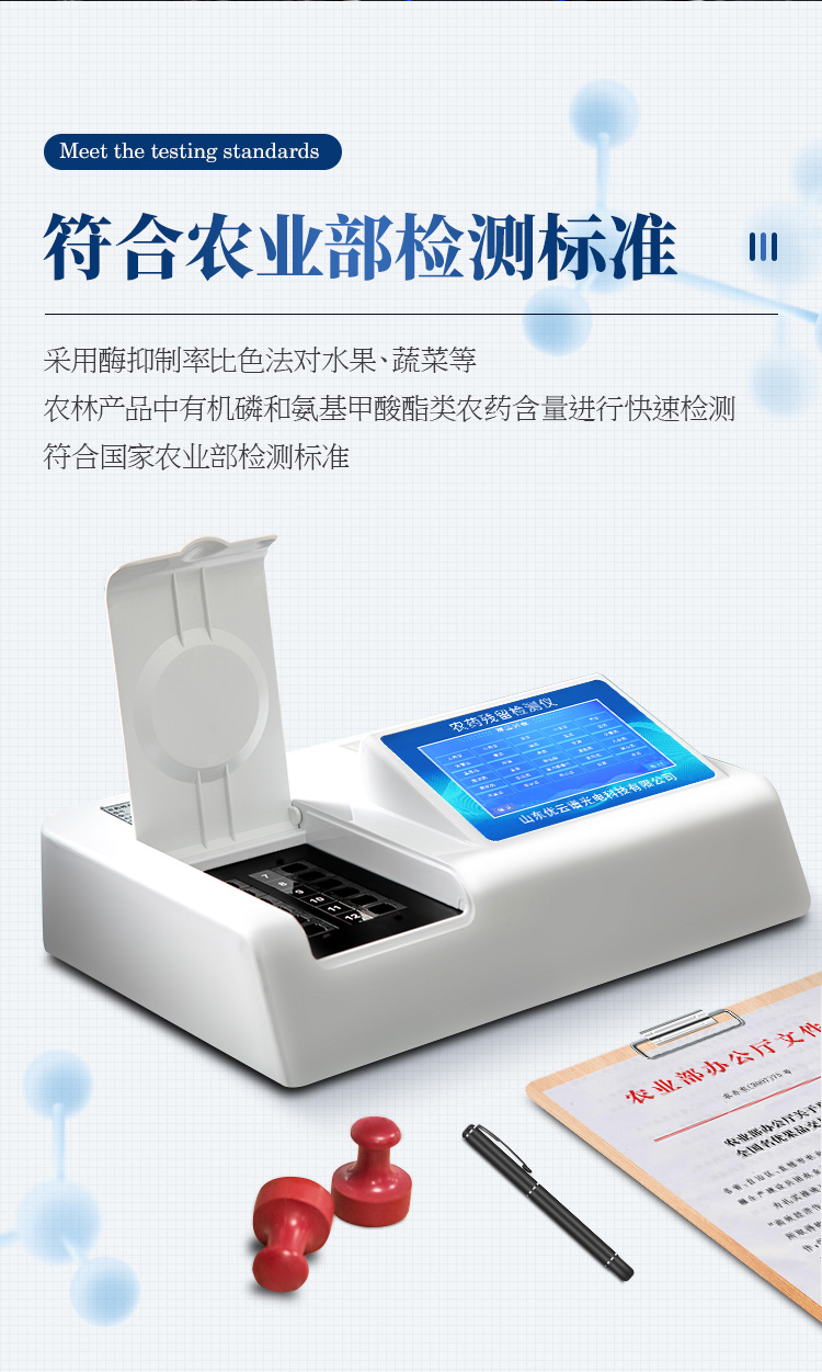广泛应用于主要用于蔬菜、水果、茶叶、粮食、农副产品等食品中有机磷和氨基甲酸酯类农药残留的快速羞羞AV在线播放;此外还可用于果蔬茶生产基地和农贸批发销售市场现场羞羞AV在线播放,餐馆、学校、食堂、家庭果蔬加工前的安全速测等。
