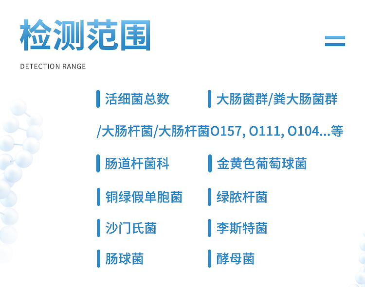 2.量程:1 CFU/mL(g)~9×109 CFU/mL(g)